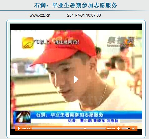 泉州理工学院学生王怀学 王怀学正为前来就诊的群众服务 7月31日,泉州电视台播出的《石狮:毕业生暑假参加志愿服务》新闻报道,我校学生王怀学成了新闻的“主角”。视频中,王怀学头带志愿者服务...