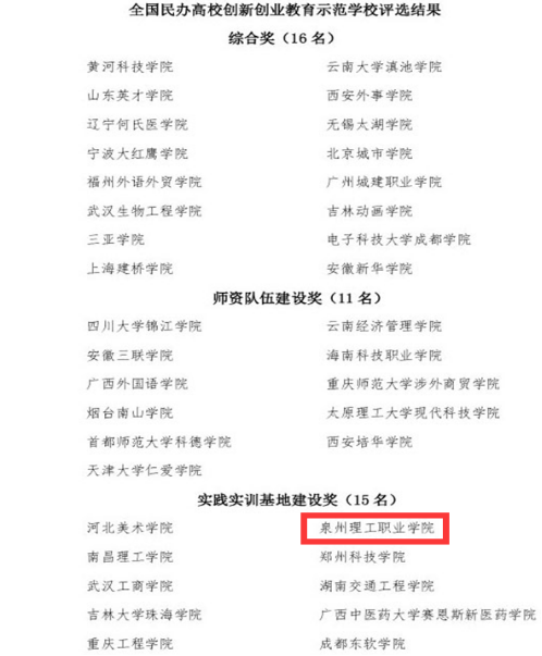 喜讯:我校荣获全国民办高校创新创业教育示范学校“实践实训基地建设奖”