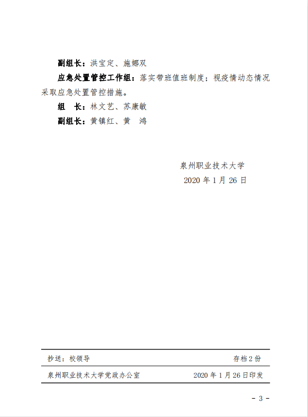 根据泉州市教育系统新型冠状病毒感染的肺炎疫情防控工作领导小组的要求和部署,为进一步强化疫情防控工作的责任意识,全面落实各项防控措施,确保广大师生身体健康和生命安全,1月26日,我校成立新型冠状病毒感染的肺...