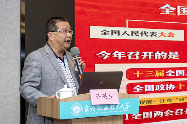 4月15日下午,我校在A301会议室召开理论学习中心组(扩大)学习会,邀请泉州市委党校齐延生副教授作主题为《2021年全国“两会”精神——的主要内容》的专题辅导报告。泉州市高教中心办全体人员,学校党政领导、中层干...