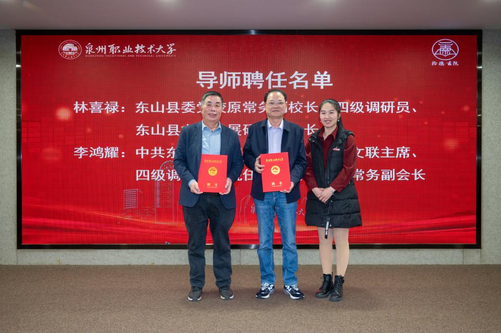 为深入学习贯彻习近平新时代中国特色社会主义思想,推动主题教育走深、走实,加强大学生思想政治教育工作,提高思政教育的质量和效果,3月14日下午,拾德书院举行思政导师聘任仪式暨专题讲座。漳州市东山县委党校原常务副校长、四级调研员、东山县文化发展研究会会长林喜禄,中共东山县委宣传部原副部长、文联主席、现任东山县老科协常务副会长李鸿耀,东山县委宣传部工会主席陈爱华,东山县文化发展研究会吴舜芳,学校党委书记...