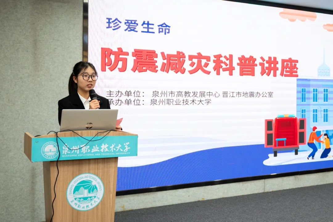 2024年11月9日是第33个全国消防日,为进一步提高我校师生防震减灾意识和应急处置能力,普及防震减灾知识,掌握地震应急逃生和救援技能,我校联合泉州市高教发展中心、晋江市地震办共同举办防震减灾科普宣传讲座。讲座由泉州市防震减灾科学传播师杜晓航主讲。他结合自己参与救援的生动案例,从地震的成因、危害、避险等方面进行深入讲解,全面普及防震减灾常识。邀请师生代表上台进行模拟演练,与会师生们积极互动,现场气氛热烈...