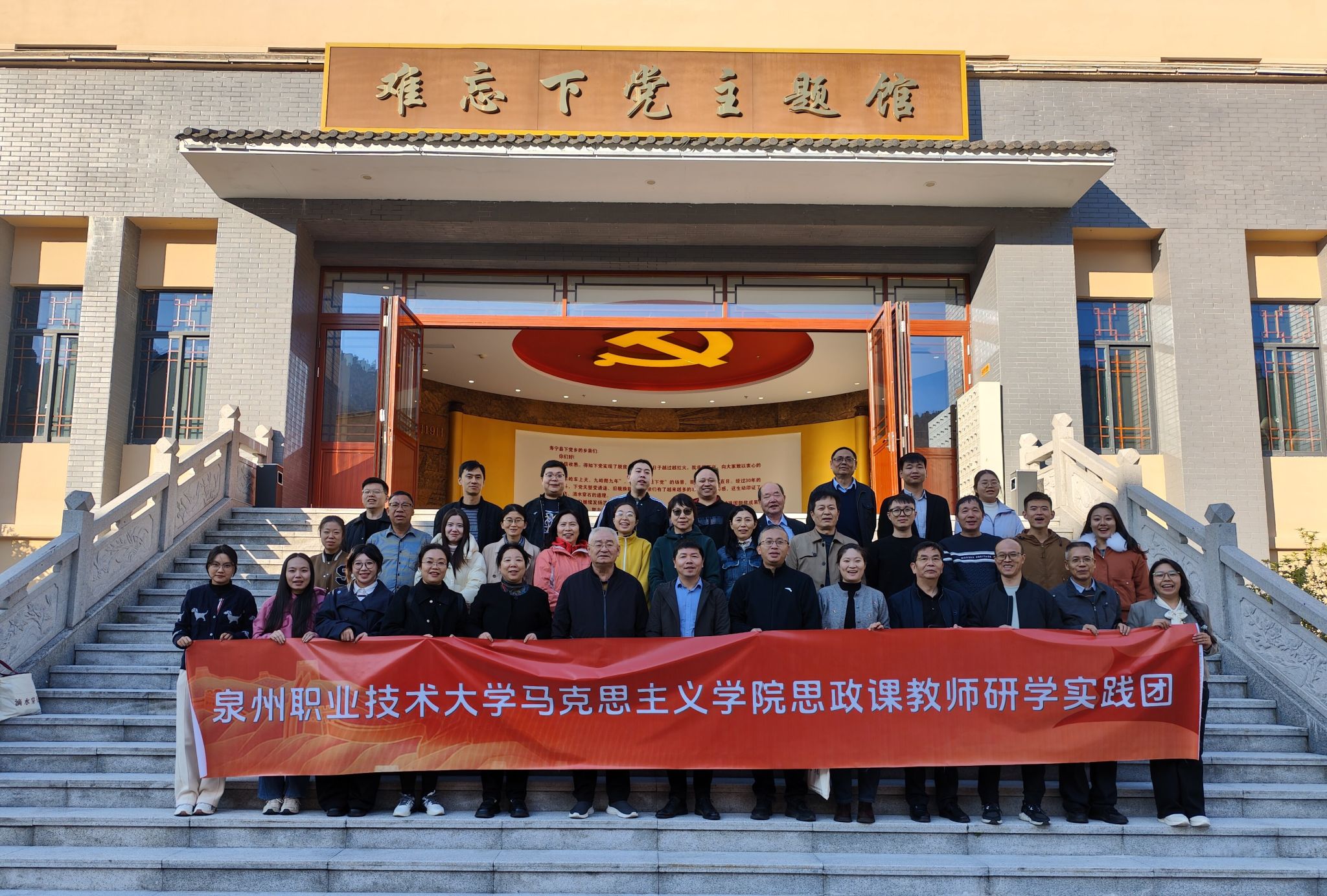 11月22日,马克思主义学院“追寻领袖足迹,感悟新思想伟力”下党乡研学实践团开班仪式在宁德市寿宁县下党乡党校隆重举行。马克思主义学院35名思政课教师齐聚这片承载着脱贫攻坚与乡村振兴光荣记忆的土地,开启了一场沉浸式、全方位的研学实践之旅。此次研学实践是马院深化实践研修、提升教师思想政治素质和教育教学能力的重要举措。开班仪式上,校党委副书记、副校长蔡金佩讲话。他强调,思政课是铸魂育人的关键课程,全体教师...