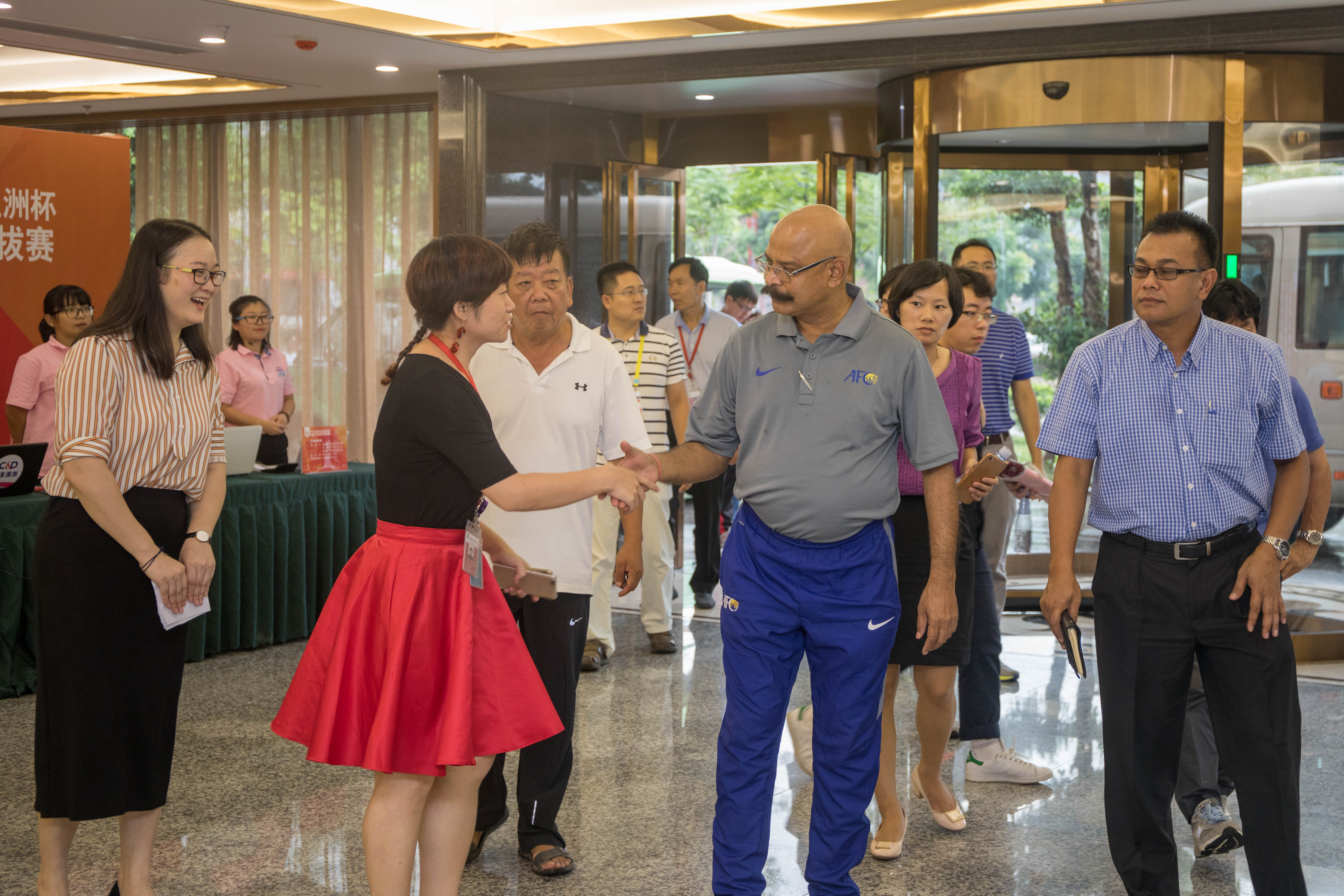 8月24日,亚洲大体联执委、技术委员会主席阿尤布·哈法,亚洲大体联执委、技术委员会委员五十嵐久人,技术代表高塔姆·卡尔考察团一行,晋江市副市长王海飞等领导嘉宾,到我校考察2018年亚洲大体联亚洲杯比赛食宿、场馆等筹备工作,并现场观看亚洲杯中国大学生足球选拔赛男子组季军之战。