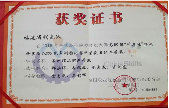 ◆指导学生参加全国高职测绘技能大赛荣获二等奖1项,省赛二等奖2项,三等奖3项;