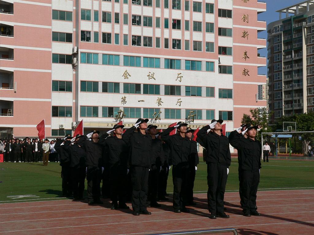 碧空万里无云,操场旗海翻彩。