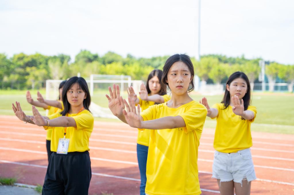陈若汐(左一)练习五祖拳
