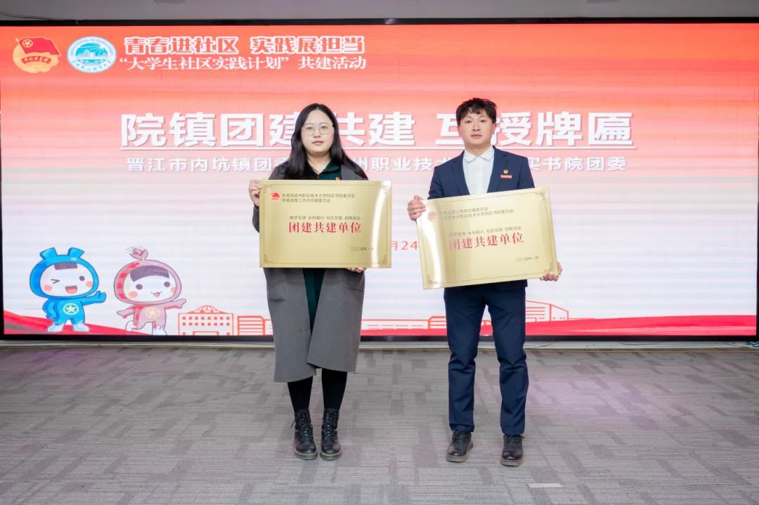 1月24日,晋江团市委与泉州职业技术大学团委联合开展“青春进社区,实践展担当”大学生社区实践计划共建活动暨首批大学生社区兼职团干聘任仪式。