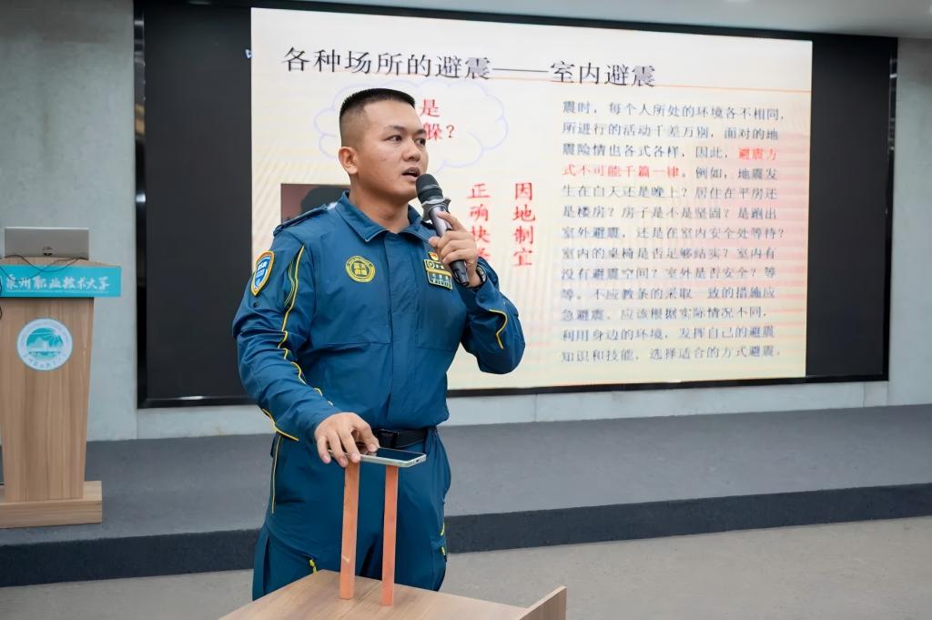 2024年11月9日是第33个全国消防日,为进一步提高我校师生防震减灾意识和应急处置能力,普及防震减灾知识,掌握地震应急逃生和救援技能,我校联合泉州市高教发展中心、晋江市地震办共同举办防震减灾科普宣传讲座。