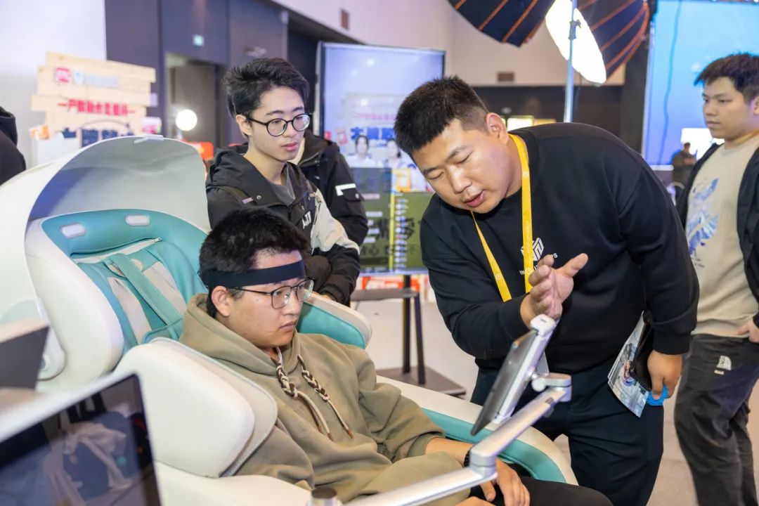 ▲ 我校联合国内首创“AI+数字化心理健康”的深圳市国关智能技术有限公司打造心理设备体验区,提供心理健康、专注力测试等