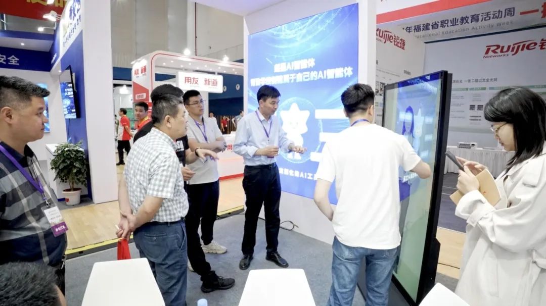 企业展区由华为、希沃、超星、锐捷、用友新道、奇安信、凌迪、索尼、北森生涯、国关智能心理等校企合作“天团”展示丰富的职业教育应用场景,提供多元沉浸式互动机会,还有晋江市域产教联合体牵头企业盼盼食品集团带来的高品质健康品牌新体验。