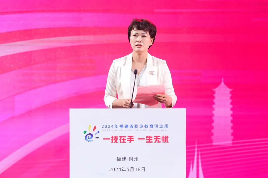 庄灿霞副主席致辞表示,泉州历来高度重视职业教育,将职业教育摆在教育改革创新和经济社会发展中的突出位置。在省教育厅和各省直部门的指导支持下,泉州市职业教育服务区域经济社会发展能力得到显著提升。每年面向社会开展各类职业技能培训超25万人次,技术交易合同成交数累计超1200项、成交额近1.5亿元,为泉州乃至福建经济社会发展和产业转型升级提供强有力的人才支持、智力支撑。泉州将借力全省职教活动周的东风,深化推进国家产教融合试点城市建设,持续在内涵建设、改革创新、融入融合、主动服务上下功夫,培养更多高素质技能人才,助力全省职业教育高质量发展。