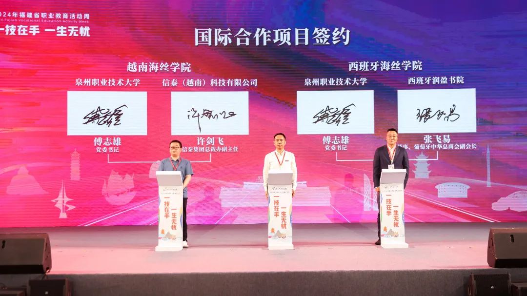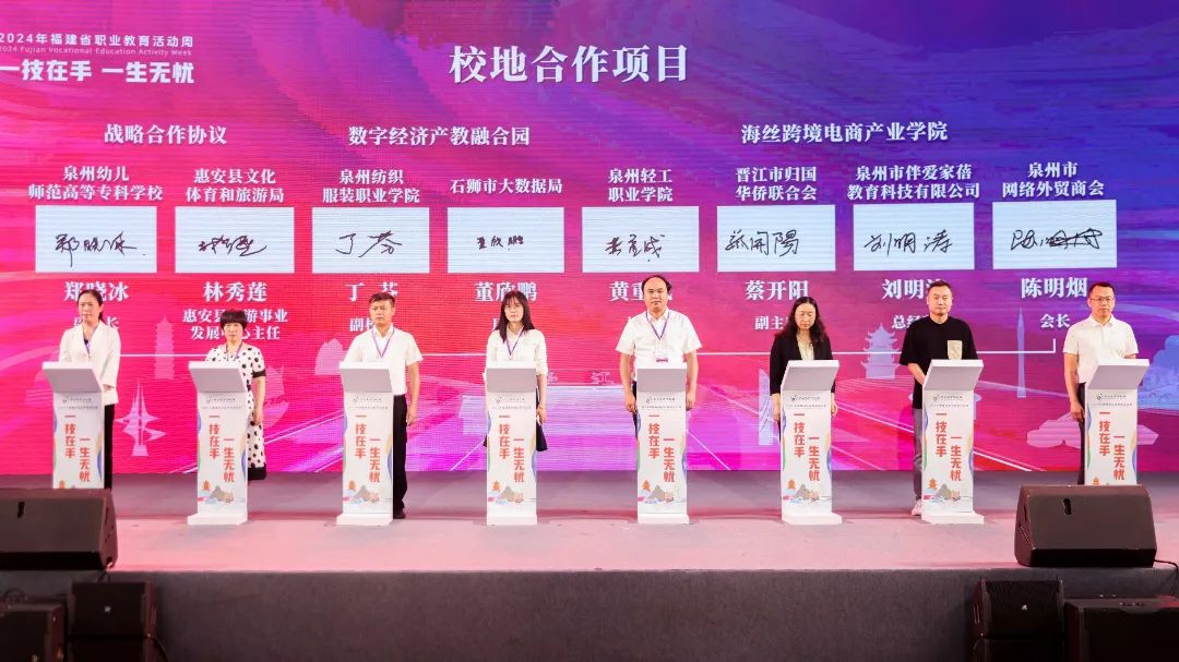 活动上,公布了福建省第一批20个“海丝学院”并进行授牌,为入选首批28个国家级市域产教联合体的晋江市域产教联合体及6个省级市域产教联合体授牌,并表彰在全国职业院校技能大赛中获得一等奖的教师。