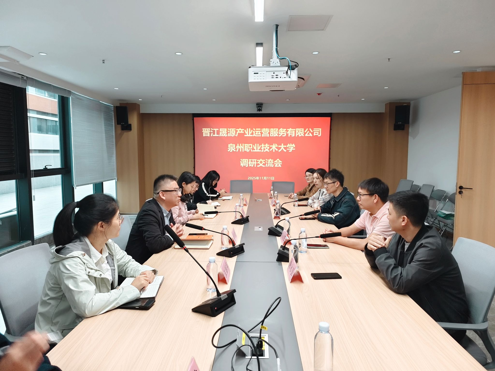 在晋园发展集团副总经理、晋江晟源产业运营服务有限公司董事长黄辉煌的带领下,调研组先后深入永佳智能装备产业园实训协作区及智能制造生产车间,近距离观察智能装备产业的发展态势与岗位实操场景,深入了解园区运营模式以及产业布局及人才需求方向,为后续合作筑牢认知基础。