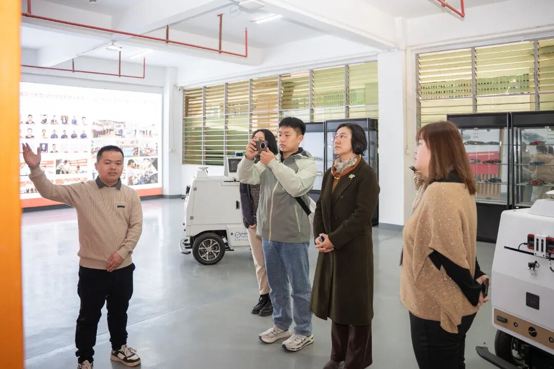 会前,黄薇一行实地考察我校校史馆、绿色建筑展厅、数智产教融合展厅、艺术工坊等特色教学空间,深入了解我校在职业教育与产教融合方面的实践成果。