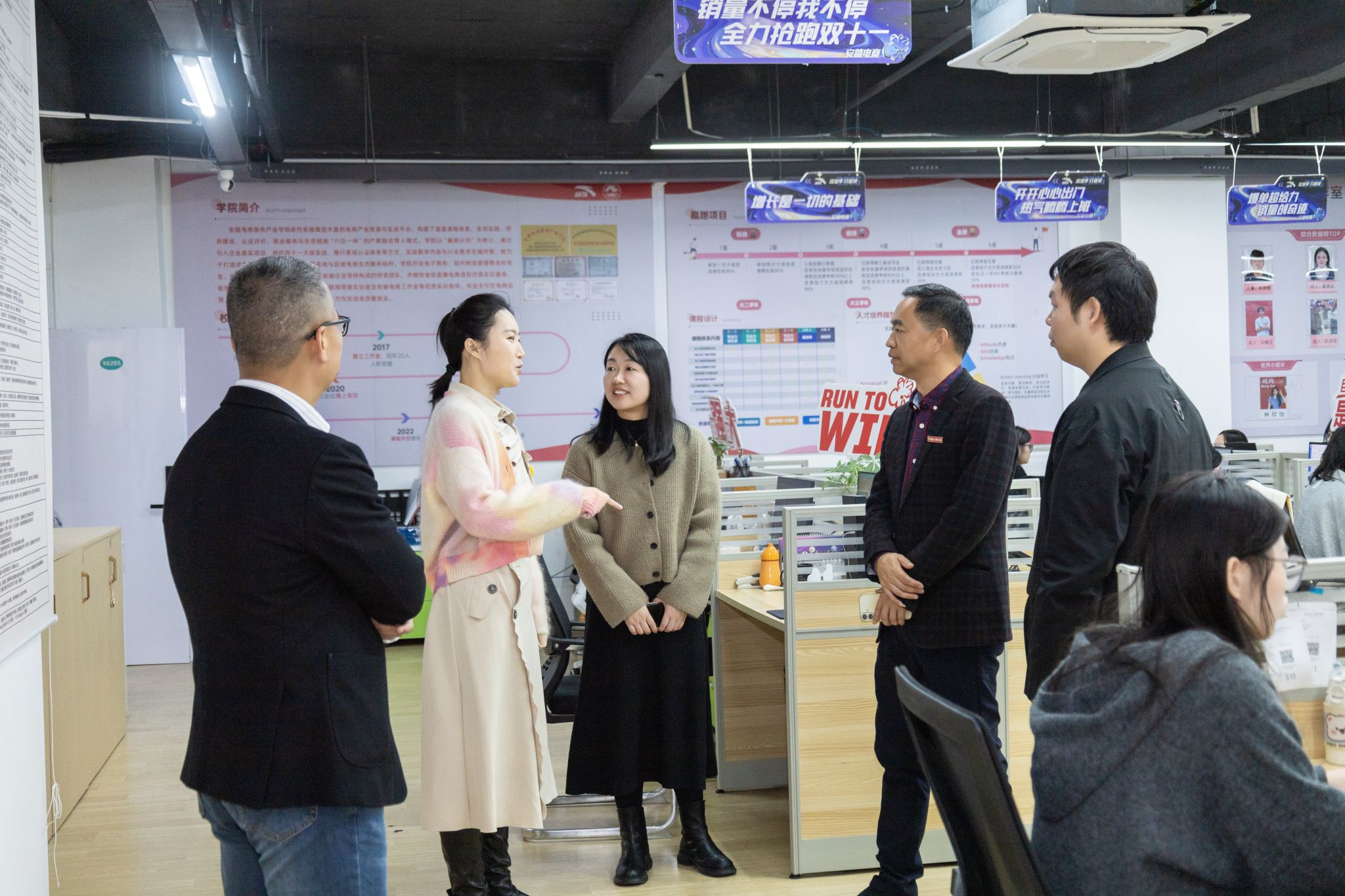 调研组深入校园,实地考察了校史馆、艺术设计展厅、党建馆、数智产教融合展厅、能源学院、拾德书院、行云新能源产业学院、安踏电商服务产业学院、艺术工坊、金鸿智联有限公司等校内生产性实训基地,对学校特色的育人理念和育人成效给予高度评价。在随后的座谈会上,来自工学院、联合创新产业学院、能源学院、人居环境学院、商学院、教育学院、艺术传媒学院的12名师生代表,结合自身经历讲述了技能成长道路上的坚守与突破。