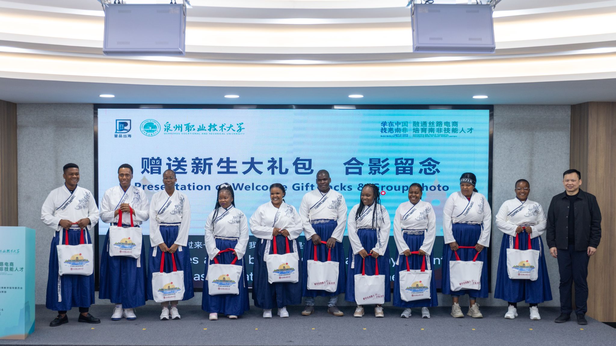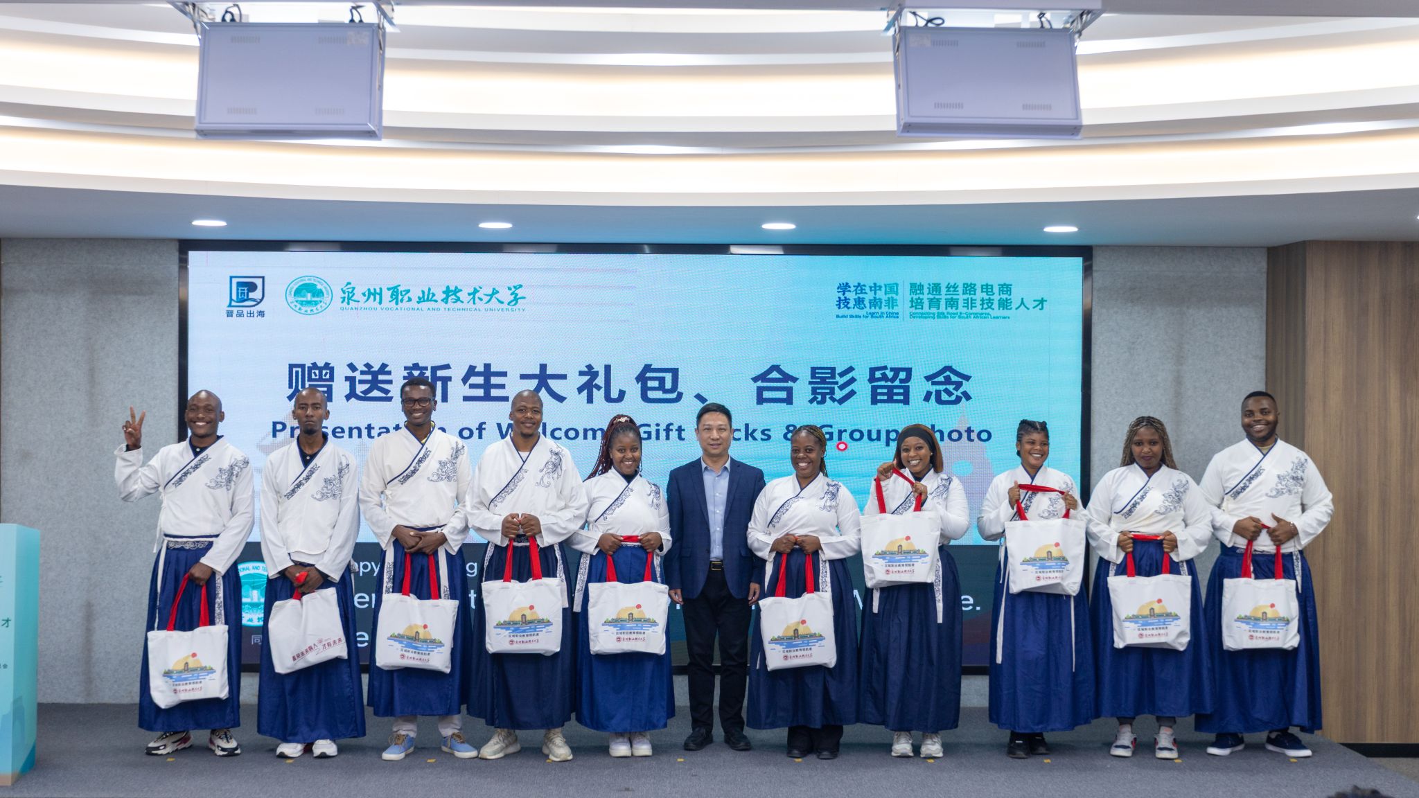 她介绍,学校接到“学在中国”计划南非跨境电商技能专训班项目时,迅速成立十几个部门参与的工作专班,与各级政府、晋品出海指挥部、行业协会、头部企业紧密沟通,为学员的到来做了充分准备。培训将构建理论学习、实训演练、项目实战、文化体验“四位一体”的人才培养体系,并邀请平台公司培训师、行业专家、企业负责人参与教学。她对学员们提出三点希望,要珍惜机会学真本领、广交挚友链接资源、牢记安全平安研学。学校计划学员学成归国时将成立南非校友会,让这份中南情谊得以延续。