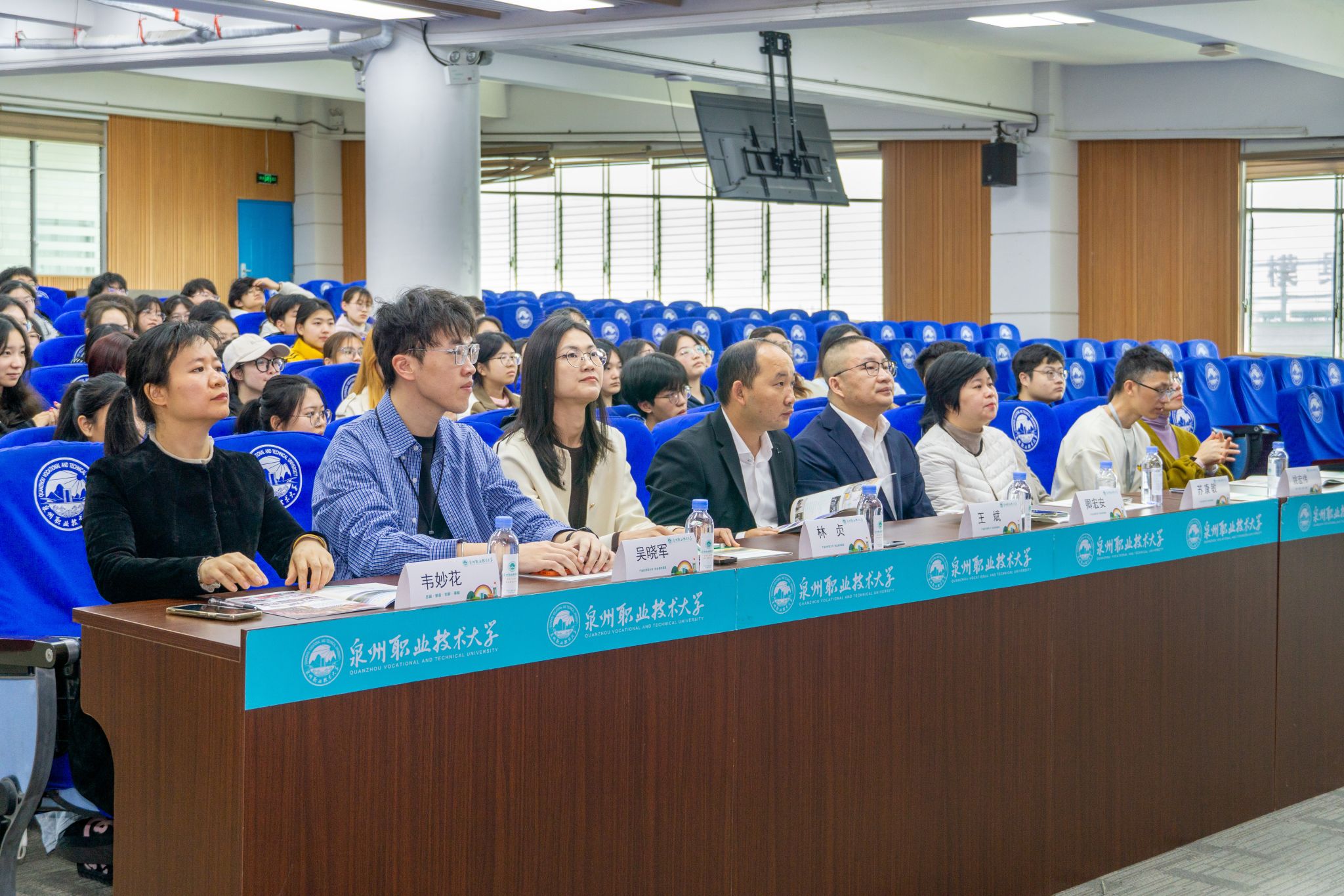 出席活动的嘉宾有顺丰速运福建区中转管理部主任卿宏安、人力资源部主任王斌、招聘组经理林贞、校招校企接口人吴晓军,我校校长助理、教务处处长苏康敏,商学院院长姚宏伟,商学院院长助理郭学超,现代物流管理专业带头人贾蔚、专业负责人韦妙花、专业教师沈雪容,现代物流管理专业2023级全体同学。活动由贾蔚主持。