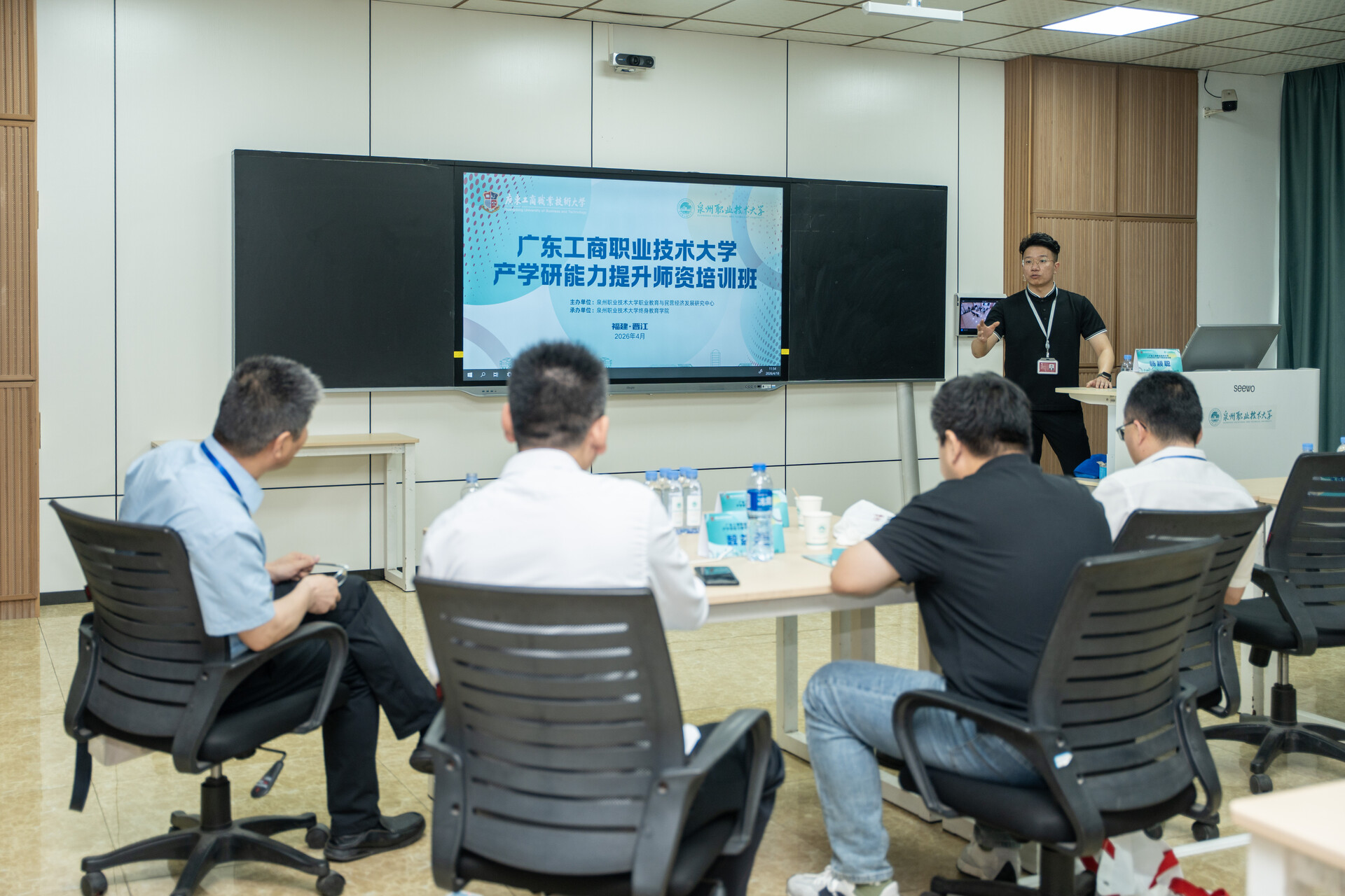4月18日至20日,广东工商职业技术大学大旺校区管委会副主任郑志峰带领智能制造与汽车工程学院院长魏益群、人工智能与大数据学院副院长朱培培等10名骨干教师及管理人员,到泉州职业技术大学参加产学研能力提升师资培训班。培训由我校职业教育与民营经济发展研究中心主办、终身教育学院承办,以专题讲座、现场教学、实地考察、研讨交流相结合的方式进行。