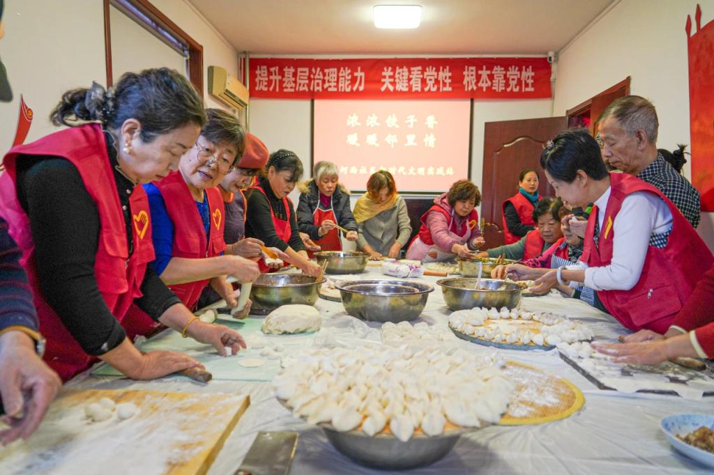 ▲2023年12月20日,山西省阳泉市城区北大街街道社工站联合滨河西社区新时代文明实践站开展“浓浓饺子香 暖暖邻里情”活动。图为社工和志愿者为辖区空巢老人包饺子。