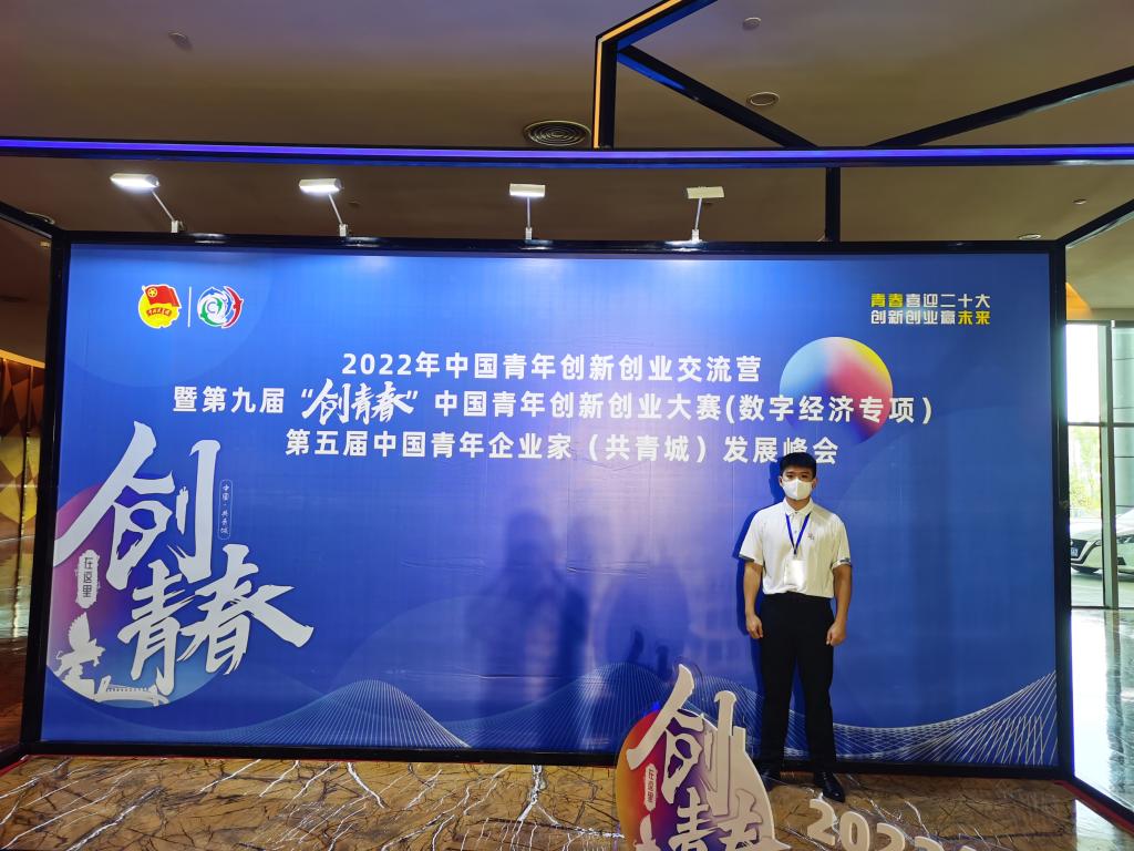 ▲ 邱宁博参加2022年中国青年创新创业交流营暨第九届“创青春”中国青年创新创业大赛(数字经济专项)