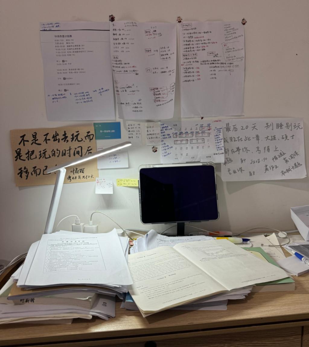 大一、大二时,叶蔚锴专心致志学好专业课,大三那年12月,他开始紧张有序的考研备考。他每天早起晚睡,利用番茄计时软件精准规划时间,确保能充分利用每分每秒。
