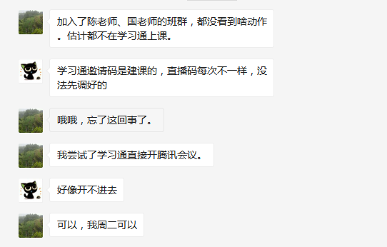 老师们互相交流,分享线上教学平台的使用感受,提出个人线上教学的经验与方法,给其他上课的老师提供参考。对使用线上教学平台不懂的地方,在群里互相帮助解决。