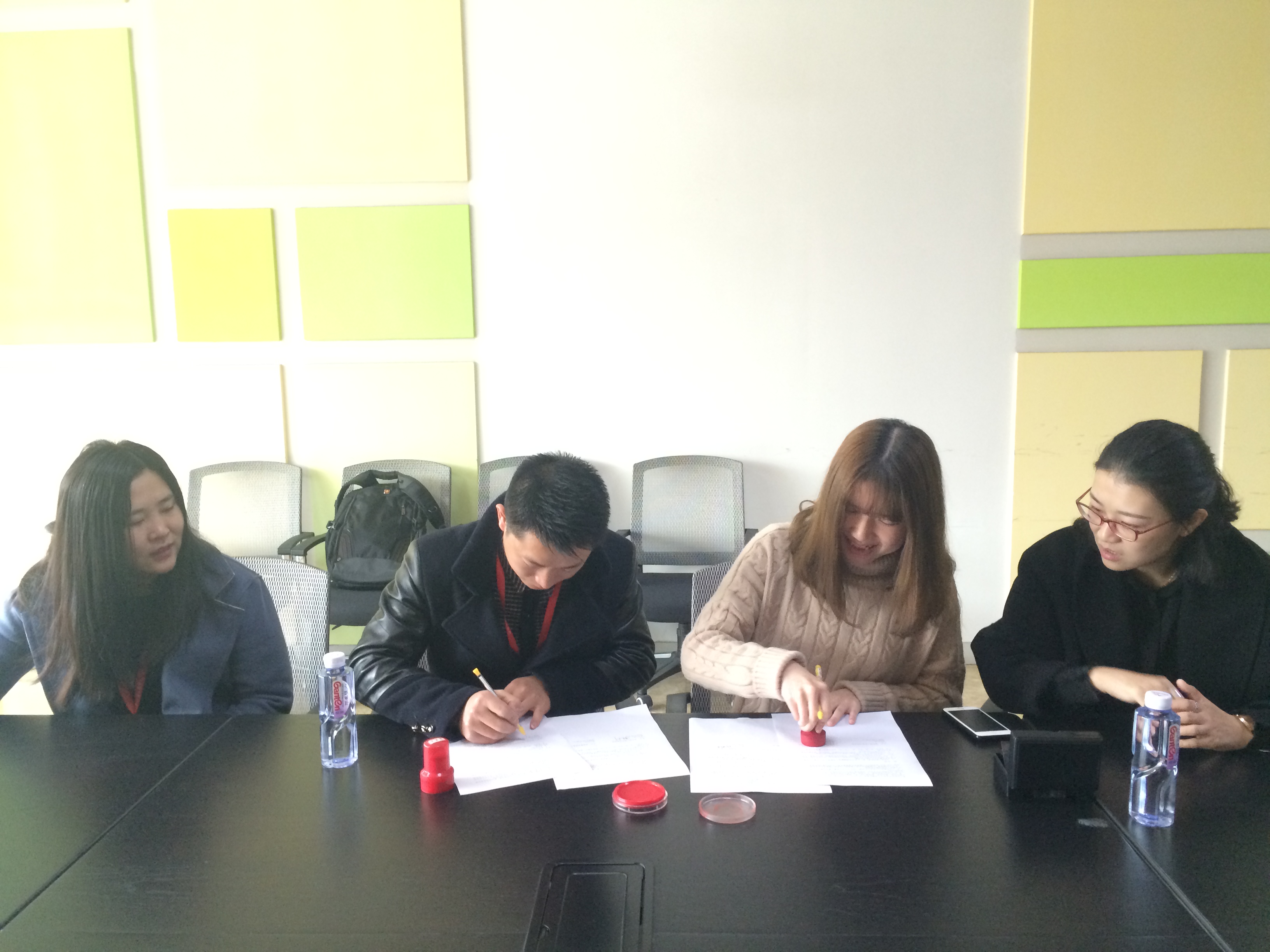 签约仪式上,杨总与傅永剑等老师共同签署了校企合作协议,并就合作事宜进行交流,对各自情况做了详细介绍。福建鼻涕虫婴儿用品有限公司业务涉及面广泛,包括设计、美工、销售和电商等,因此需求面也广,即需要专业性人才,也需要灵活性强的人才。对我们广告的学生来说,提供了更多的选择性和发展可能性。双方也针对16级学生的实习工作提出了试实习、提前互动等合作方式。