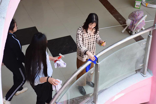 泉州理工学院为美化社区环境,对楼层进行粉刷工作。在工期结束,双馨书院的同学在323日中午利用午休时间对双馨书院的走廊、扶手、周边环境以及宿舍卫生进行全面的清洗。太阳光洒在我们的书院粉色的墙体上,书院显得格外温馨!
