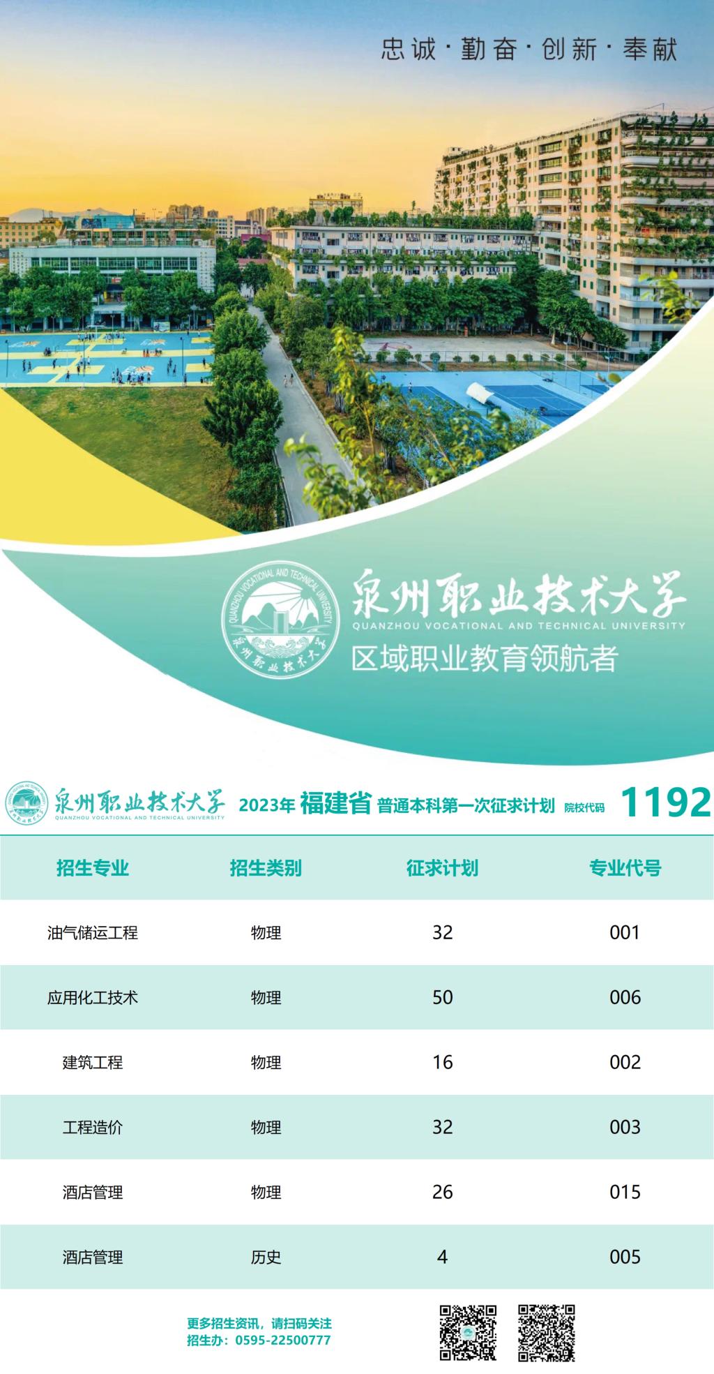 泉州职业技术大学2023年福建省普通高考本科批第一次征求计划公布
